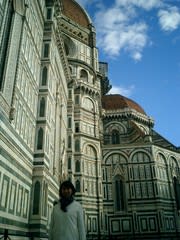 フィレンツェのDuomo、ミラノのDuomoとはかなり趣が異なりますな。ミラノは荘厳なるゴシック様式かと思われますが、目もくらむようなモザイク模様。写真は朋子嬢でございます。