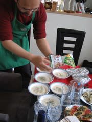 実は何か一品の持ち寄り依頼をしたが為に、その確認のために事前にメールが廻りまくりました。しかしおかげで6人分丸々料理を作ることもなく、またデザートやお酒類(我が家ホントにお酒の消費がないのでね。。。)も充実したものになりました。なのでテーブルの上には持ち寄っていただいたものを含めていっぱい並んでね。ちょと嬉しい♪
