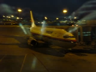 767かなぁ。いやぁ小さい機材でした。そしてビックリしたのは、Kuala Lumpurからのたった1時間のフライトでミニケーキが出てきた事。しかも紙箱?なんて言うか(あぁ写真撮るんだったぁ!)3x4x3cmの小さな箱の中に甘いケーキが入っていたなぁ。夜8時過ぎのフライトで取り敢えず皆飯食ってるだろ、ってことでケーキ程度か?って言う感じだったのかなぁ。。。