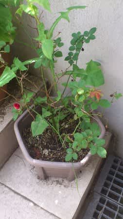 今朝がた玄関先の鉢植えに小振りだが薔薇が咲いていた。