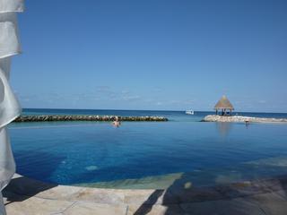 なんて言うか、海を借景にしている訳で。海の色と微妙に違うから分かるものの、遠目にはホント、プールと海の境目が分からなくなる。ずーーーーーーーーーーーーーーーーーっと永遠に水平線迄繋がっているように見えます。