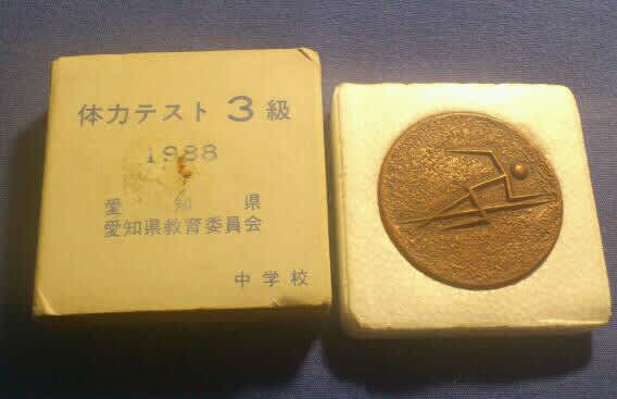 学年とか関係なく、そのスコアを競うので、中学一年生等まず無理。二年生でもほぼ無理だった気がする。野球部にいる先輩とかでも貰える人は稀で、一年生や二年生の時には縁が無いと思っていた。中学三年間で身長が30センチメートル伸びたおいらはどうも中学三年生の時に体力面で色々覚醒したらしい。手が届かないと思っていたメダルを、三級とは言え三年生の時に貰えたのである。