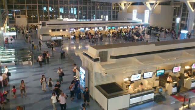 国際線terminalの駐車場に入るだけで10分近く待った。