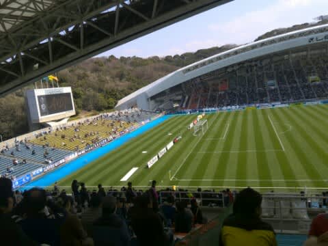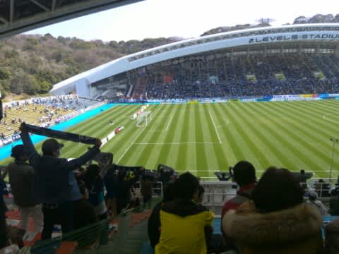 試合は1対1で引き分け。昔マリノスに居た坂田が頭であわせた得点は難しい角度から決めたと思うなぁ。