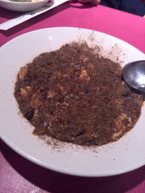 黒いのは山椒です(笑)。辛いんだけど、ただ山椒の味が主張する感じで、正直そこまで麻婆豆腐として山椒掛ける必要ないのでは?と言う感じで。ラー油系の辛さも足してくれたり、ニンニクとかの辛味を追加してくれた方が良いね。全般的に美味しかったです。メッチャ、アウェイの東京駅でしたがお勧めですね。