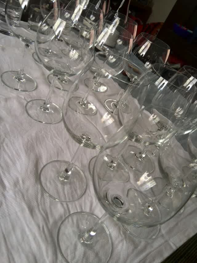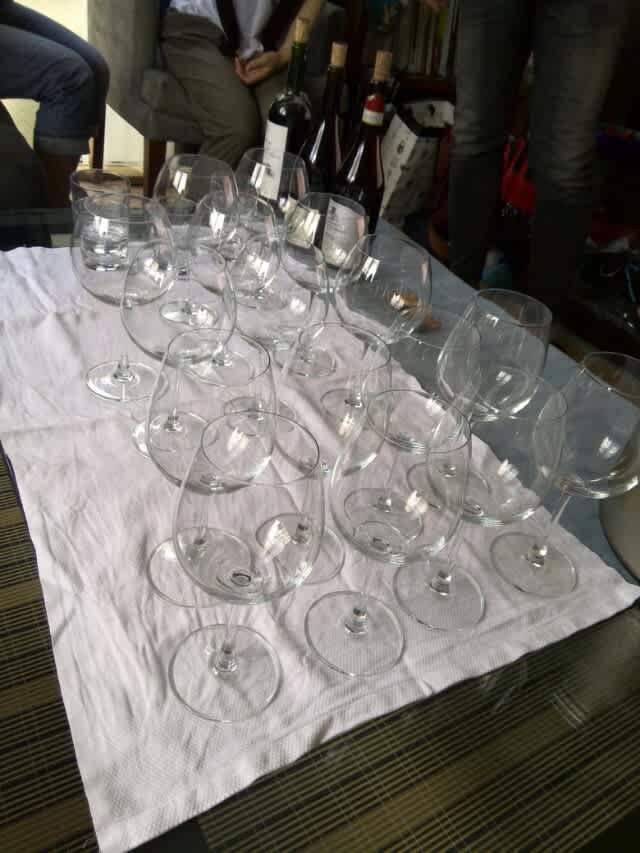 これだけワイングラス用意して飲み比べ。