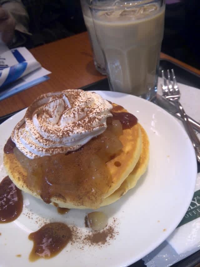 事前MTGの時に某所のタリーズコーヒーに行ったらちょうど食べたいと思っていたパンケーキがあったので昼代わりに。『T’sアイス』とメニューにあり付いているのとなしのがあったのでそのT’sアイスの中身を聞いたらアイスティーと言う。はて、T’sアイスと言うのはアイスクリームではなく、アイスティーのセットの事かと理解させられ、アイスティーを飲みたくなかったおいらはタリーズコーヒーなのにコーヒーではないのは不思議だなと思いつつ、『それ、コーヒーに変えられないですか?』と聞いたら逆に不思議な顔をされた。ドリンクはセットではないので、と。益々不思議な話に思え、さっきアイスティーって言ったのはあなたでは?と思ったのだが、レジの女性が何を言いたかったのか、終ぞ分からぬままパンケーキをオーダーし、セットでもなんでもない単なるカフェオレを頼んだ。