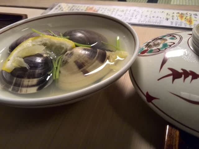 そしてこれは蛤の酒蒸し。言わずもがなで美味し。水菜がよく合いますわ。出汁は同じくでしょうか。