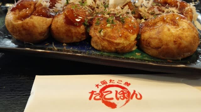 大阪と言えば「粉モン」。さりとて、万博記念公園から伊丹空港への移動はギリギリ+アルファくらいだったので、お好み焼きを食べて帰る時間はなし。ッて言うか、家に帰って奥さんの料理を食べたかったので、小腹を満たすのみと言うことでたこぼんへ。正直、昨日泊まったホテルでは夜中2時過ぎに寝たんだけど、その後何度も目が覚めてしまい結構疲れていたんだけど、やっぱお腹は減るんですよねぇ。