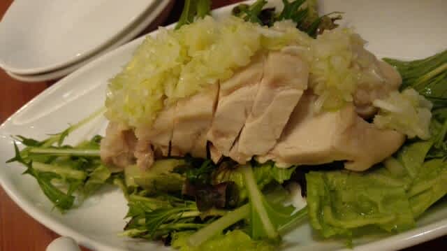 ネギ塩鶏がまずserveされた。少し野菜が足りなさそうだったのでね。