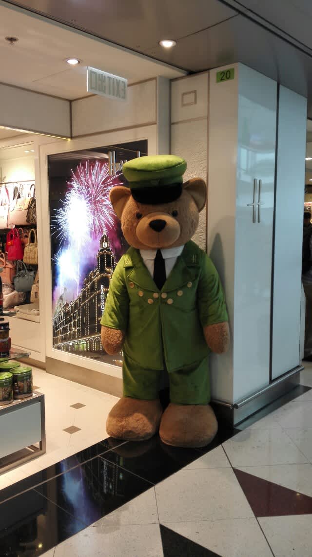 Harrodsのクマちゃんが見送りの際にまた来てね、と言っていた。