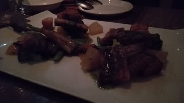 その後second piattoで豚肉と野菜の焼き物が出てきたけど、店内暗くて写らずw。