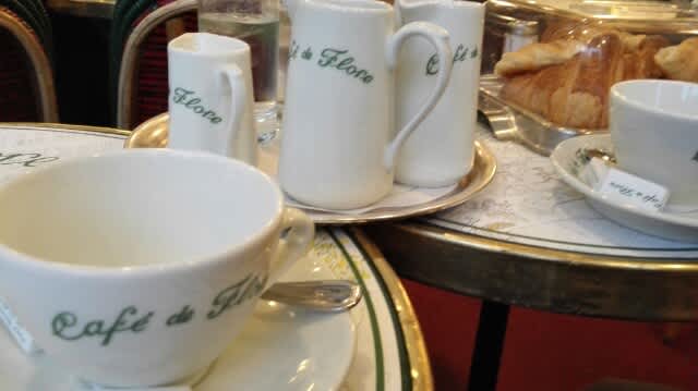 奥さんの友人のカフェ研究家の方からのレコメンでCafe de Floreと言うSaint Germain des Presにあるカフェにて朝ご飯をば。
