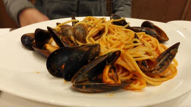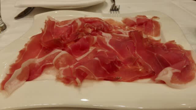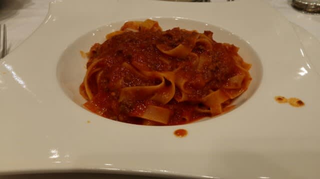 Prosciutto de Parmaをオーダーしてパンと共にパクつく。そう言えばこのお店おいらが2003年に下見に来た時から遅かったんだった、出てくるの…。その後、おいらはBologneseを。