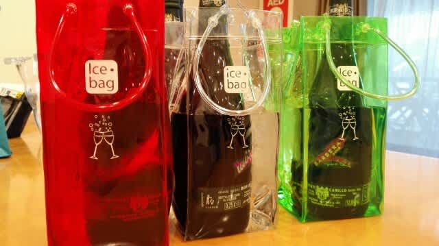 こんな感じで、ItaliaのTri Coloriのワインクーラーに入れてみました。この前、Milanoの雑貨屋で赤、白、緑のワインクーラーを買ってきて今回のProssimo Vinoのワイン会で使ってみました。中々可愛いw。