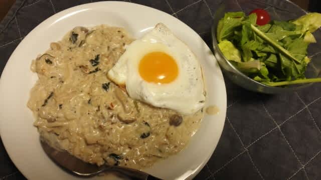 まず、通販で購入した館ヶ森高原の豚さんをフライパンで焼いてメインディッシュに。その時豚肉から脂が出たのでそれをベースにホウレンソウを炒め、牛乳を加える。更にそこにItaliaで買ったドライポルチーニを入れて、そこにcheeseを入れて溶かしてみた。スパイスとして、これまたItaliaで買ったbasilやペペロンチーノの素を入れ、最後にマーマレードを。