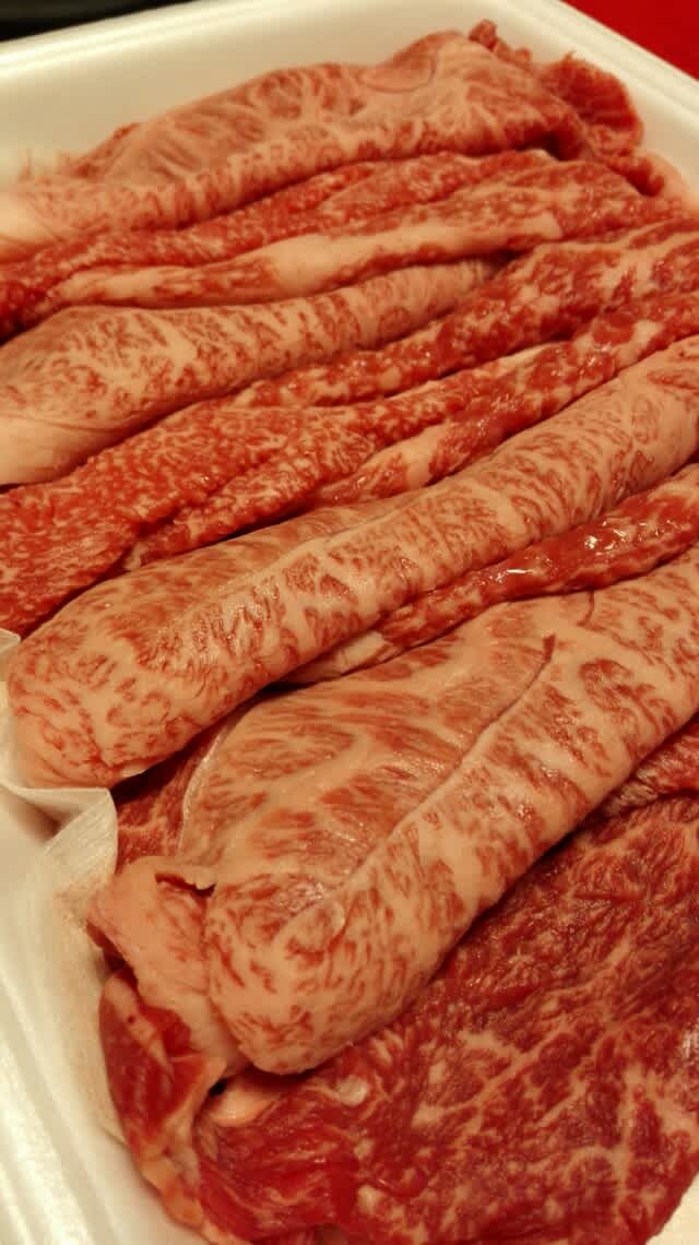 イベリコ豚のお肉もあわせて、白菜、葱、椎茸、エノキ、豆腐と共に。我が家はすき焼きしません。単純においらが嫌いだから。すき焼き、好きくない。宮崎牛の霜降り肉、激ウマ。。。本当に美味しくて美味しいとしか言えない。大きさが大き過ぎて半分に切ったのに、それでも大ぶりの極上霜降り肉。甘いお肉の脂が溶け出して行く。。。
