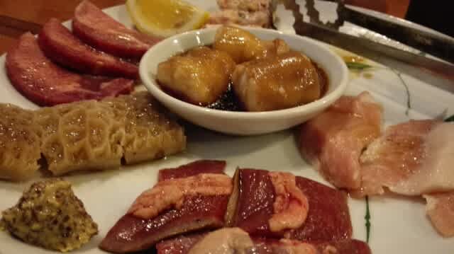 牛ハラミ、ミノ、豚タン、ハツ、その他。。これ以外にもう一皿3種類オーダーして締めました。