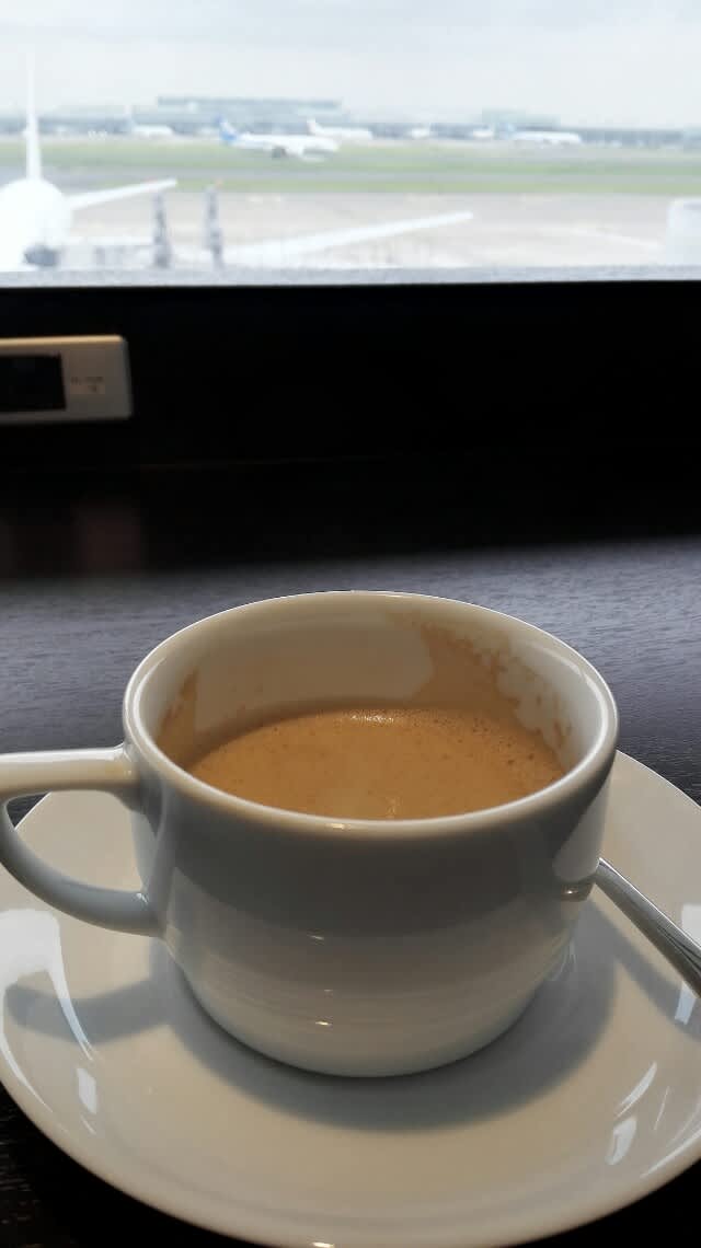 と言う訳でJALのラウンジでコーヒタイム。早起きして良かったね。