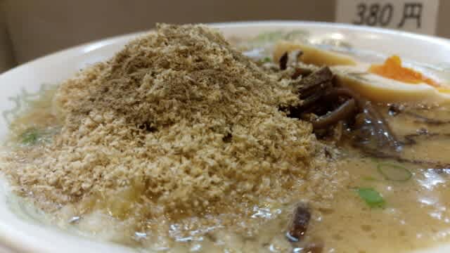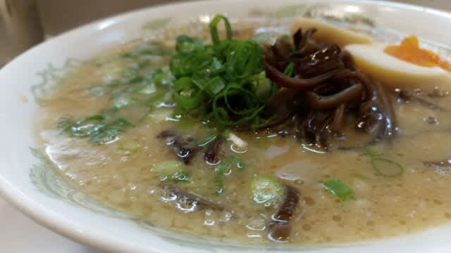 何処がルーツなのか、毎度調べようと思っているのだが、『ふくいしラーメン』と書かれている。でも、どう見てもとんこつラーメン。で、調べてみると、佐世保市がルーツらしい。福石町と言う場所があるようです。博多ラーメンとはちょっと違うのよね。それでいて、久留米ラーメンとも異なる。あまりジャンル的に分ける必要はないかも知れないが、ふくいしラーメンと言うジャンルなのである。とんこつラーメンはとんこつラーメンなのだが。
