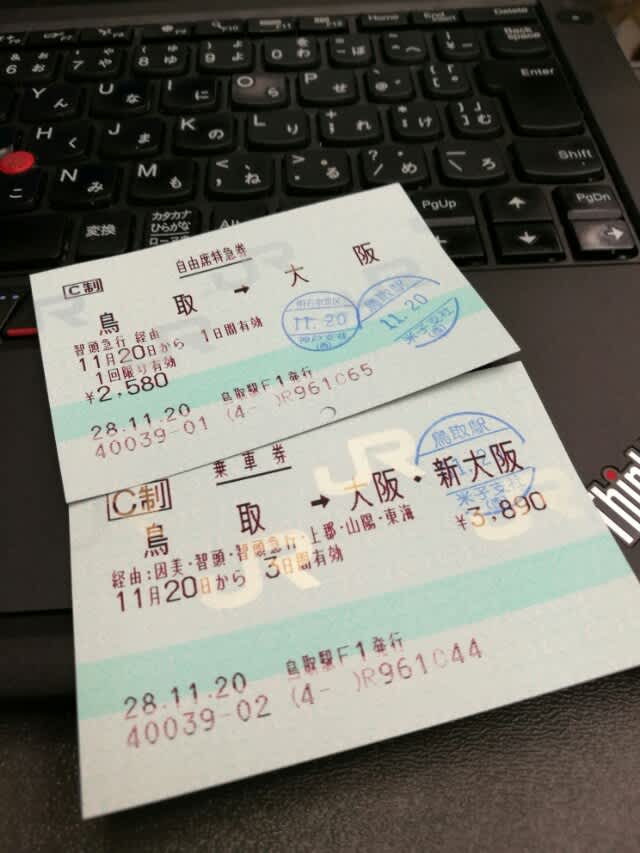その後、鳥取駅からスーパーはくと、と言う京都行きの電車に乗ったが、なんと途中1時間半程立ちっ放し…。