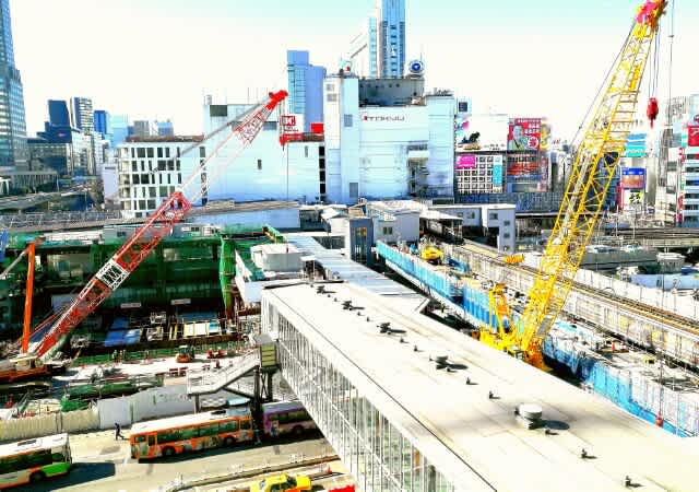 それからヒカリエが建ち、東横線が地下になって(迷うし深くて最悪だよね。。)その東横線のホームの位置に埼京線とか湘南新宿ラインのホームがスライドしてくるのでその工事の真っ最中ですな。
