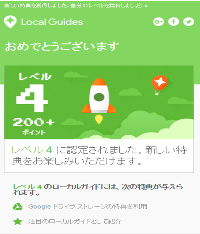 以前から、コマ目にご飯を食べに行ったり、移動して撮ったりした写真を、Google mapとリンクさせてアップロードして、且つコメントをしていたら、なんかグレードが上がったみたいで。