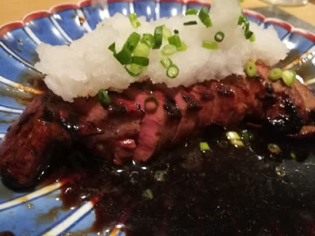 そしてハラミの焼き物。大根おろしと共に、バルサミコがベースとなっているであろう特性ソースとの相性は抜群であった。表面だけがカリッと焼かれていて、それでいて中は絶妙な火加減で決してレアではなく、しっかりと歯応えのあるお肉となっていた。前回と同様、これは絶対に作れないなと思ったね。