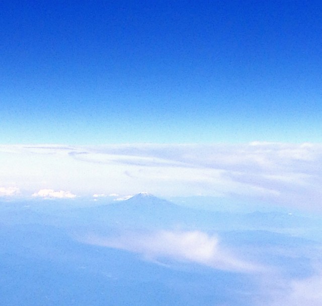 残り1席で選択の余地なしで。おいら、通路側が好きなのですけど仕方ない。今回はちゃんと千社札貰ってから一眠り。起きてシェードを上げたら富士山が眼下に。