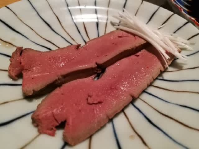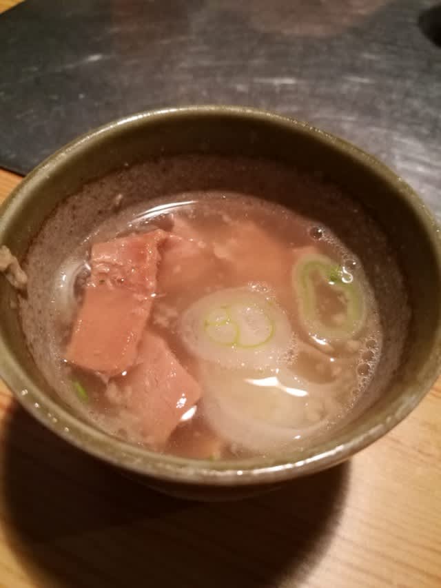 そしてハラミの焼き物のダシ汁漬け。白ご飯が欲しくなるところですが、そこは大人だし、我慢…。このお肉を細かく切って、白ご飯に乗せて、このゆうじ特有のタレを乗せて食べたら死ぬほど美味いだろうな、って思いながら、大人なので、我慢…。