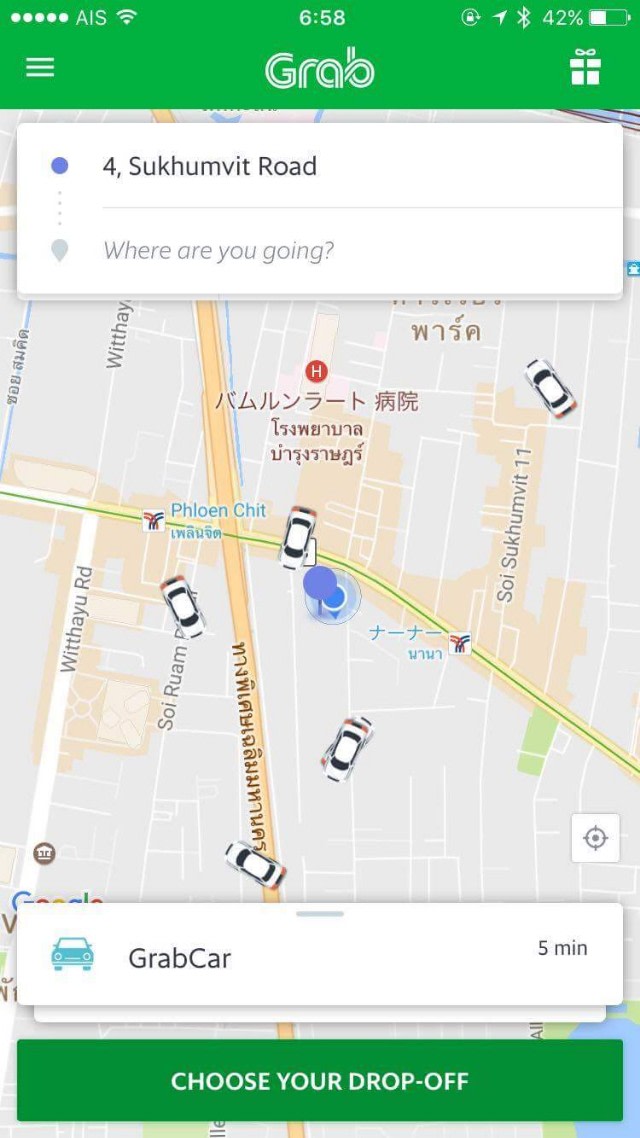 羽田空港で奥さんが落としていたタイのタクシーアプリ、『Taxi Grab』でタクシーを呼んだ。タイ語が喋れなくとも行き先はアプリ上に出るし、凡その料金も最初に出る。