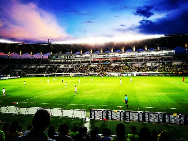 前半はaway ゴール裏に居たんですけど、後半開始でゲートを閉めると書いてあったので、本来の席に戻ったんですな。このクラブのサポーターは、Awayでも全然負けていない。人数比は完全に負けているけど、声量は五分五分以上。まとまり方は半端ないですね。かと言って、どこぞのクラブのように毎試合暴れたりしないと言う意味で、とても素晴らしいビヘイビア。移動するのは正直悩んだのですが、上述のとおり、ゲートを閉めると書いてあったので、帰りのことを考えて、泣く泣く移動…。ハッキリ言ってジェフサポド真ん中w。そしたらたまたまですが、物凄く口の悪いサポーターが、まぁまぁいる所で。。。。あんまりサッカー分かってないっぽいけど、