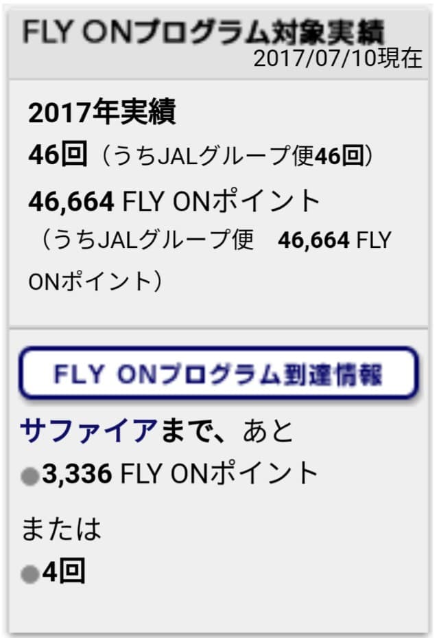 とは言え、今月は予定されているFlightは合計7回。残り4回です。と言う事でRubyからSapphireに。でも、大したベネフイットがないんよね。。。既にJGCであるのでね。それよりも、着々と500Flightに向けて進んでおります。最近、FFPのプログラムとしては、特に目新しさどころか、サービスグレードを落としていて、所謂、『釣った魚には餌やらん』状態のJAL。良いんですか?もうちょいきちんとよく乗る人へのケアしておいた方が良いかと。。。