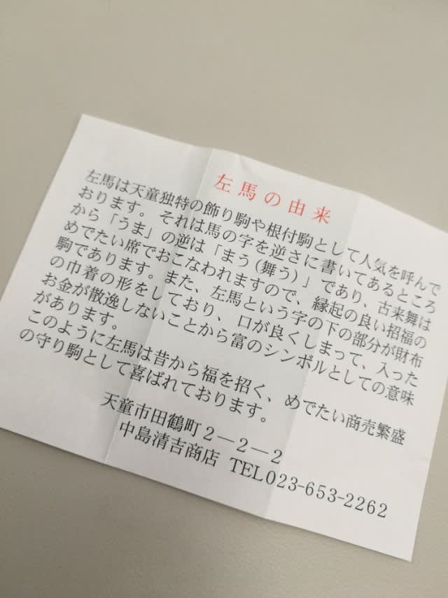 左馬は、馬の字を左右逆さに書いてあり、音で言えば、「まう」に。で、舞う。福を招く、めでたい商売繁盛の守り駒なんだそうです。