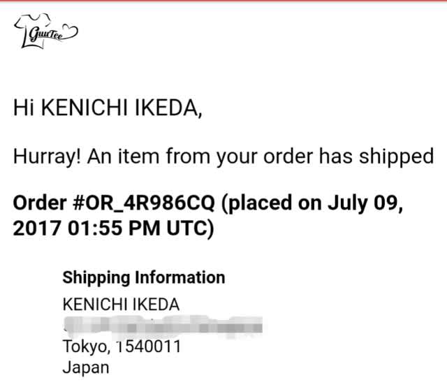いや、夜中にメールが来ていたからアメリカ時間では14日だっただろうか。印刷が終わり、出荷されたとのこと。意外と早い。以前、MilanのECサイトでスマホカバーを発注した事があるが、海外からの配送は久々だな。