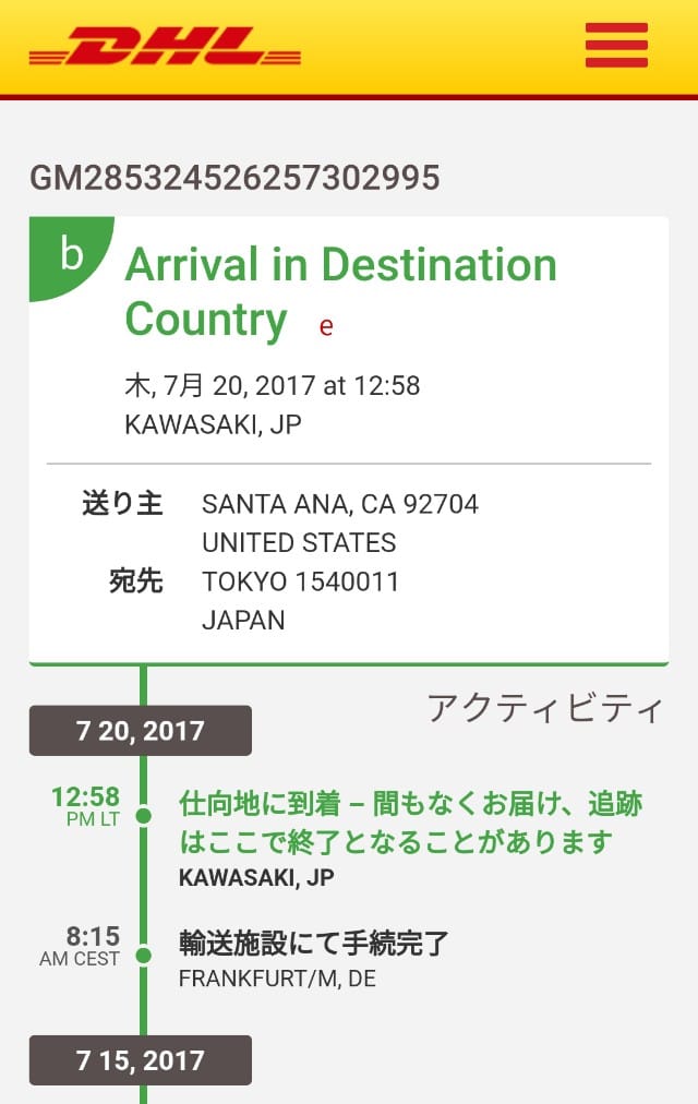 いや、どう考えても太平洋渡った方が早く配送出来るでしょうに。なのに、大西洋渡ってドイツって、ねぇ。。。詐欺の臭いがプンプンしてきたと同時にクレジットカードの決済を止めた方が良いかな、とも思ったりして。。