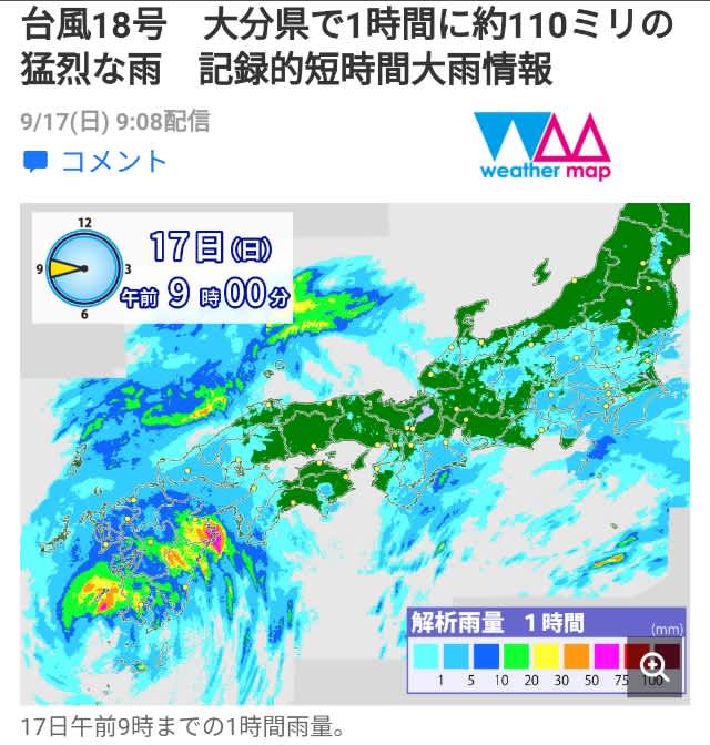 所謂、県南ですね。関係者のご出身先として聞いています。皆さん、ご家族などが在住でしょうから、ホントに心配ですね。ただ、この雨の中では現地に向かうことは可能なのか、、、この絵面からすると、最早、何処が九州なのかすら分からない程降ってますね。。大分は面積が広い県ですが、何処が佐伯なのかも分からない程…。