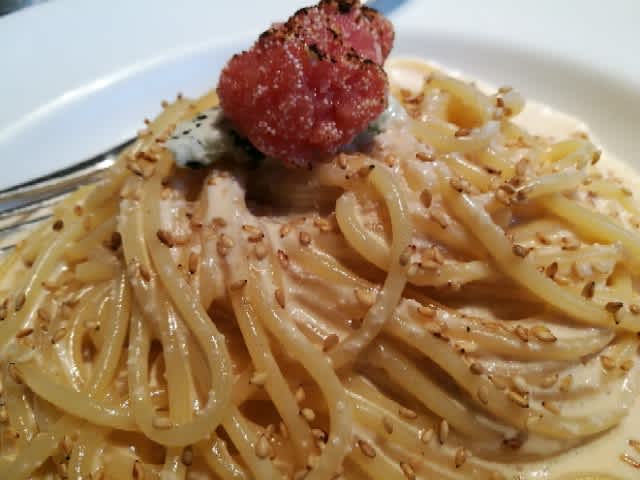 オーガニック、ヴィーガン、マクロビオティック、とそう言うのが謳い文句でランチの提供って凄いね。女性率高かったなぁ。そのお店、夜中3時までやってて。。いつも真夜中1時半とかに飲んだ後に行って、決まって、『黒トリュフ掛けのフレンチフライ』を食べてしまう訳ですな…(苦笑)。最近、してなかったけど、いずれにしても、昼間に来たのは初めてw。ランチのメインは明太クリームパスタでしたが、こちらも美味。