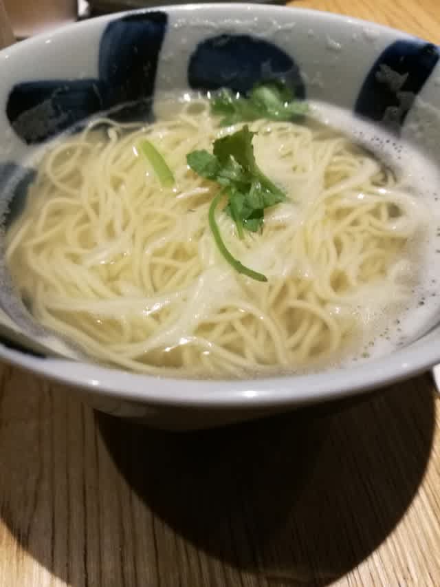 で、ハマグリのしゃぶしゃぶの出汁汁で締めのラーメンを奥さんは選択。