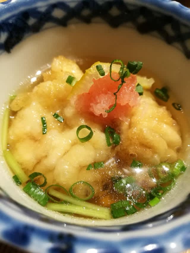 タラ白子の揚げ出し。これまたお出汁が絶品で。。ホントに美味しかった。このお出汁だけで暫く行ける。そんな中に白子の揚げ出し。美味くない理由などない。