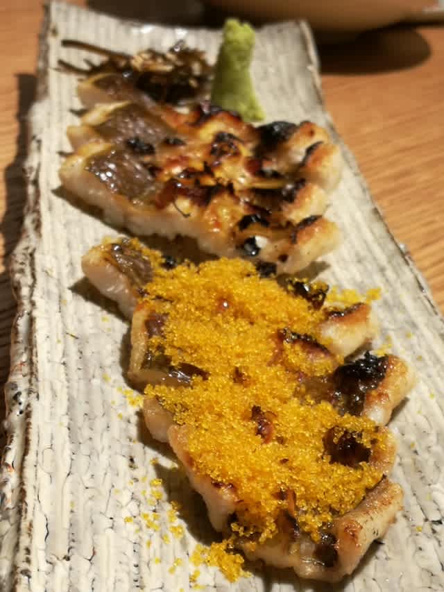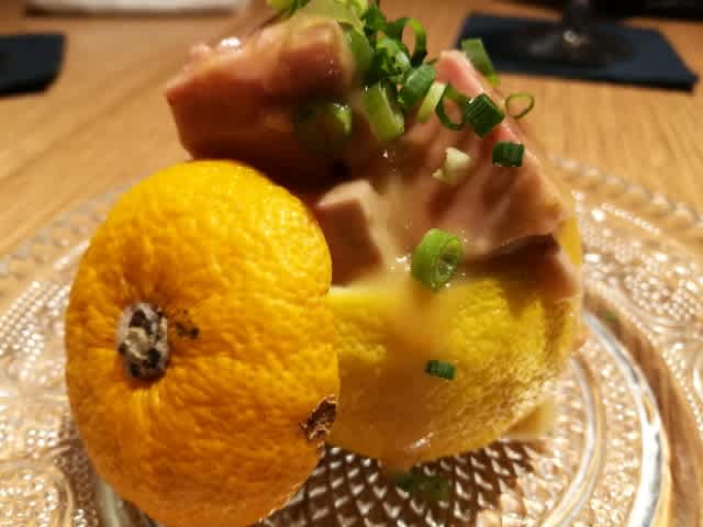 あん肝の柚子味噌和え。いやぁ、この部位を食べようと思った人、偉いね。何らかの発明よりも人類初で肝を食べた人を賞賛したい。