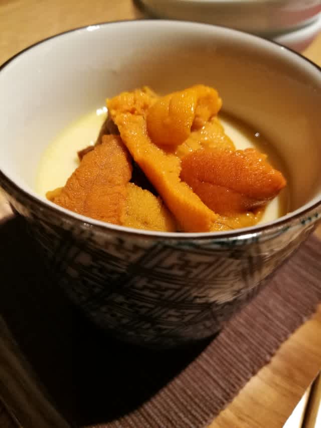 そして雲丹とトウモロコシの冷製茶碗蒸し。目が覚める程、美味しかった!この雲丹は人生Best 3に入るね。明礬臭さがなく、絶品。