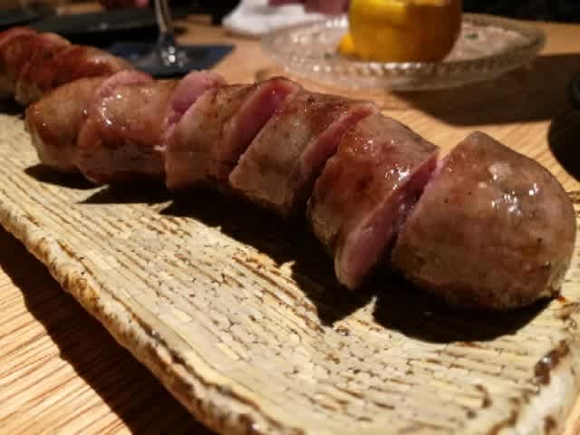 自家製山椒入りソーセージ。粒マスタードと共に。うん、美味し。
