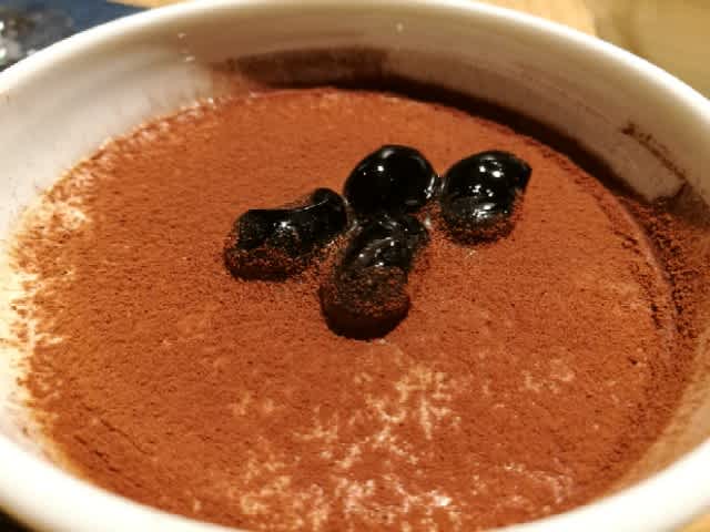 最後、デザートに黒豆プリン。