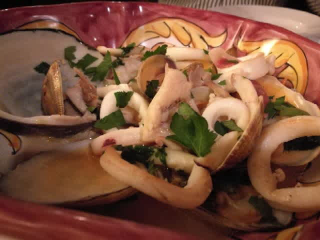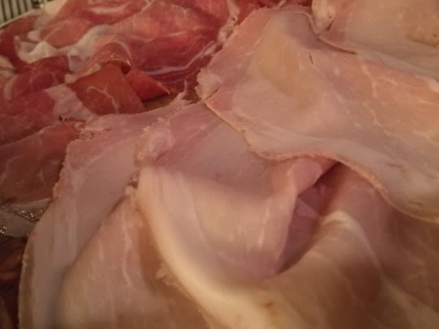 最初はprosciuttoと湯引きハム(cotto)から。prosciuttoの方が美味かったかなぁ。