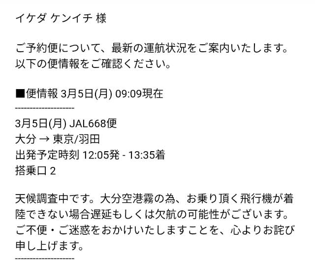 朝一番に見たメールだと、飛ばない可能性も示唆されていましたが、空港に着いたら飛ぶけど遅れる、と。
