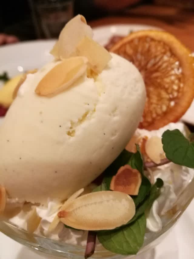 赤ワインで煮込んだリンゴをソースに見立てたバニラアイスクリーム。こう言うの作れる人ってホントに尊敬する。ま、僕はパティシエではないんだけどね。だから作れませんけど、外でしか食べられないと言うことで、凄いなぁ、と。