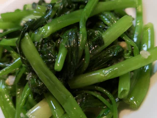 で、青菜炒め。あっさりで美味し。ホタテのエキスが入ってるように思えたな。油が絡んでの、美味しさ。