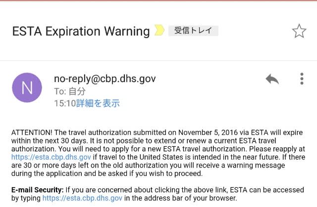 今からNYに行くことを見越している訳でもなんでもないだろうが、あと30日でESTAの有効期限が切れますよ、と言うメールを受信した。