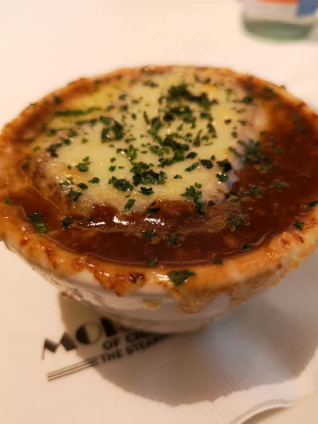 あとは、最初に出てきたオニオングラタンスープも美味し。